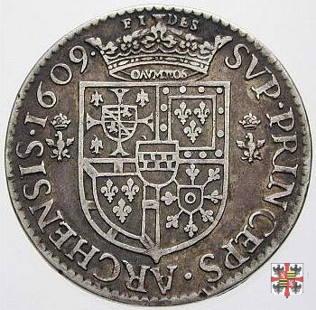 1 Legenda del D/: CAROLVS GONZAGA D NIVERN ET RETH; legenda del R/: SVP PRINCEPS ARCHENSIS (data). Lo stemma e la corona sul R/ sono di forma differente.