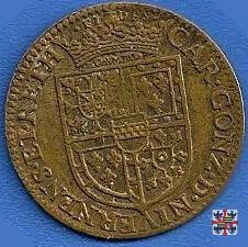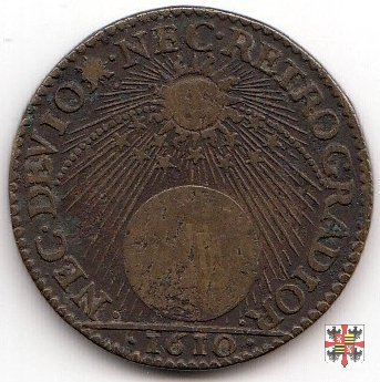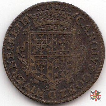 4 Stemma al D/ di forma diversa, ornato con volute, con corona piú grande e senza il motto OLYMPOS; al R/ sopra al globo terrestre sono presenti 11 stelle. Legenda del D/: CAROLVS •GONZ •D •NIVERN •ET •RETH; legenda del R/: •NEC •RETROGRADIOR •NEC •DEVIO.