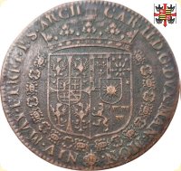 Scudo coronato, partito Gonzaga, Nevers, Cleves, Brabante e Rethel, sormontato da un'ara e circondato dal collare dell'ordine del Redentore.