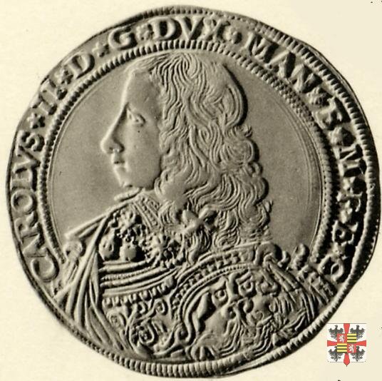| Legend: *CAROLVS *II *D *G *DVX *MAN *ET *M *F *ET *C