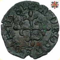 La moneta è una contraffazione del "liard au dauphin" di Enrico III di Francia. La legenda del D/ può essere anche GVL D G DVX MAN III ET M F I, quella del R/ IN DEO SPES MEO. | |||||||||||||||