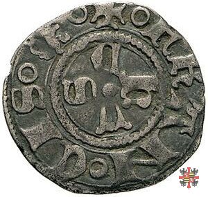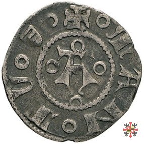 Nel campo, a completare la legenda: grande lettera A, accantonata da quattro cerchietti, il tutto entro cerchio perlinato.