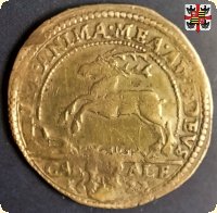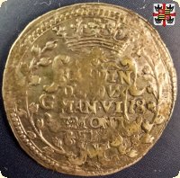 Nel campo: scritta FERDIN •D :G •DVX MAN •VI •ET •MONT • •FER • •IV •, su sei righe entro cartella ornata con cartocci e volute, sormontata da un piccolo monte Olimpo e da una corona, e circondata da due rami di alloro. Ai lati: G 18.