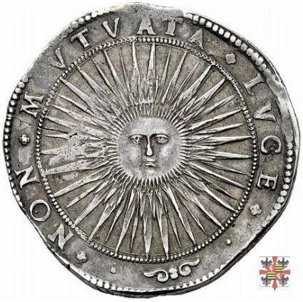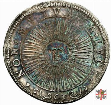 Sul D/ e sul R/, nel giro in b., è presente la faccia ornata di un cherubino, mentre mancano le iniziali C.T; la legenda del D/ è FERD D G DVX MAN VI ET M F IIII. | |