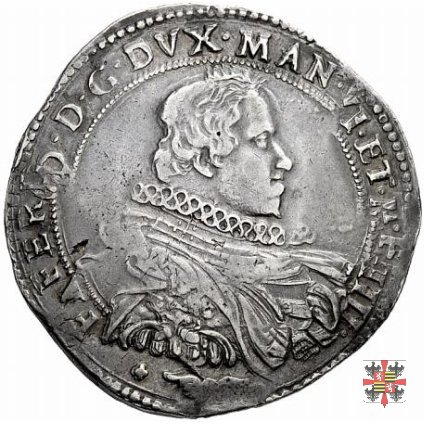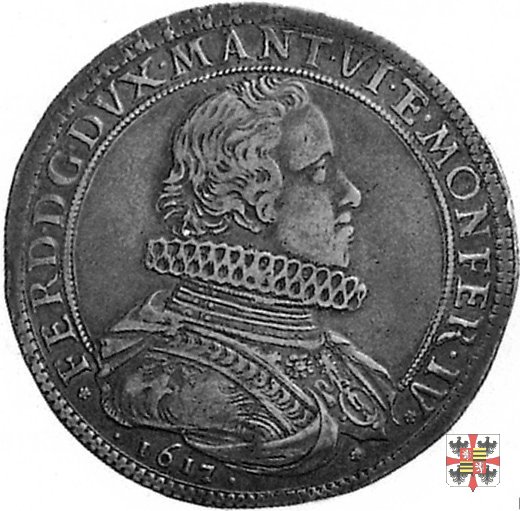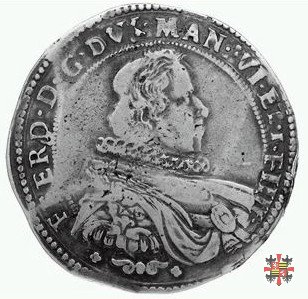 Sul solo R/, nel giro in b., è presente la faccia ornata di un cherubino, mentre mancano le iniziali C.T; la legenda del D/ è FERD D G DVX MAN VI ET M F IIII. Nel ritratto del D/ il duca è rappresentato con una gorgiera alta e stretta. | |
