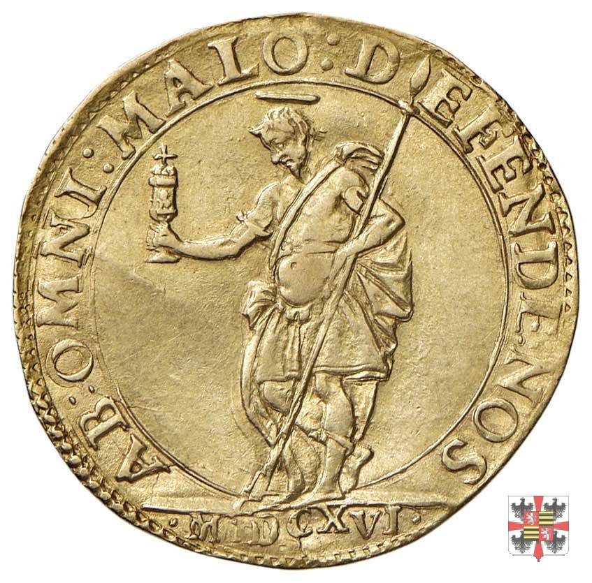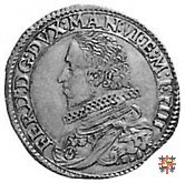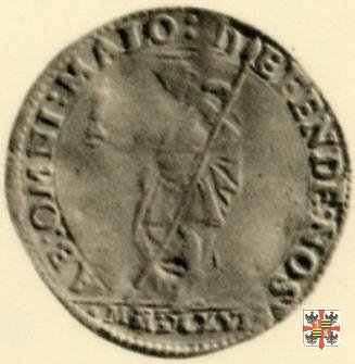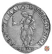 Busto corazzato a sinistra, a capo scoperto, con barba corta, colletto alla spagnola, maschera di leone sulla spalla sinistra e collare dell'ordine del Redentore sul petto.