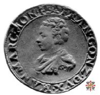 Semibusto giovanile del duca Francesco a sinistra, a capo scoperto con capelli ricci.