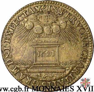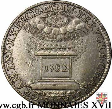 Legend: LVD •GONZAGA •ET •HENRICA •CLIVEN •IDUC •NIVERN • Legend: IN •FERVORE •CHARITATIS •GRAM •DNI •EXPECTAM 9 •