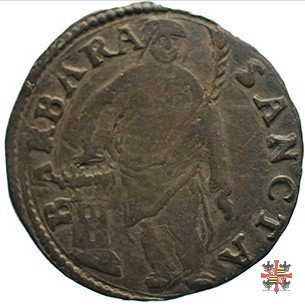 La legenda del R/ inizia in prossimità della merlatura della torre. La legenda del D/ può essere anche: GVL D G DVX MAN III ET MO/MON F I. | |