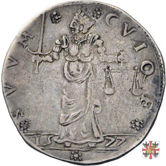 CNI cataloga nelle aggiunte, a pag. 490, un esemplare con busto a destra datato 1577. E' presumibile si tratti invece di un esemplare con busto a sinistra.