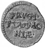 | 1 | Sul R/ la scritta è FRVGALITATI e un triangolino con vertice rivolto verso il basso, su tre righe. Di questo tipo esiste anche variante avente sul R/ la scritta su due righe e il triangolino col vertice rivolto verso l'alto. |