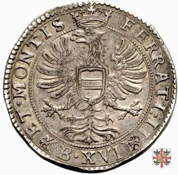| La sigla B XVI sul R/ è generalmente indicata da tutti gli autori come indicante il valore di 16 bianchi; Luca Gianazza (cfr. RIN 112/2011 pagg. 266-271) dimostra grazie a gride d'epoca come la moneta circolasse localmente al valore di 8 fiorini, decisamente inferiore a 16 bianchi (che equivalgono a 9.4 fiorini). La moneta comunque, oltre che localmente aveva pure una circolazione internazionale che va ad avallare il nome di "tallero" col quale generalmente viene conosciuta. | |||||