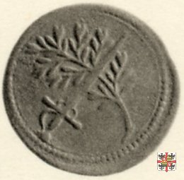 Soldo con la spada e l'olivo decussati