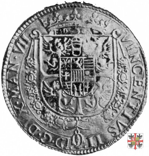 | Come per l'omologo tallero del duca Ferdinando, anche questa moneta, a causa della croce di Gerusalemme al R/, è assegnata da tutta la letteratura corrente alla zecca di Casale. Tuttavia, questa moneta mal si inquadra nel sistema monetario monferrino del periodo, tanto che studi recenti (cfr. Gianazza su RIN 112/2011 pag. 283) ipotizzano una sua possibile riassegnazione alla zecca di Mantova, assegnazione confermata da citazioni dirette di questa moneta su gride mantovane dell'epoca. | |||||