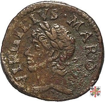 Quattrino o bagattino col cappello Dritto: FRANC •MAR •MA •IIII • Semibusto a sinistra, con barba a punta, capigliatura corta e cappello. Verso: XPI •IHESV •SANGVINIS Reliquiario del Preziosissimo Sangue, sormontato da piccola croce. | |