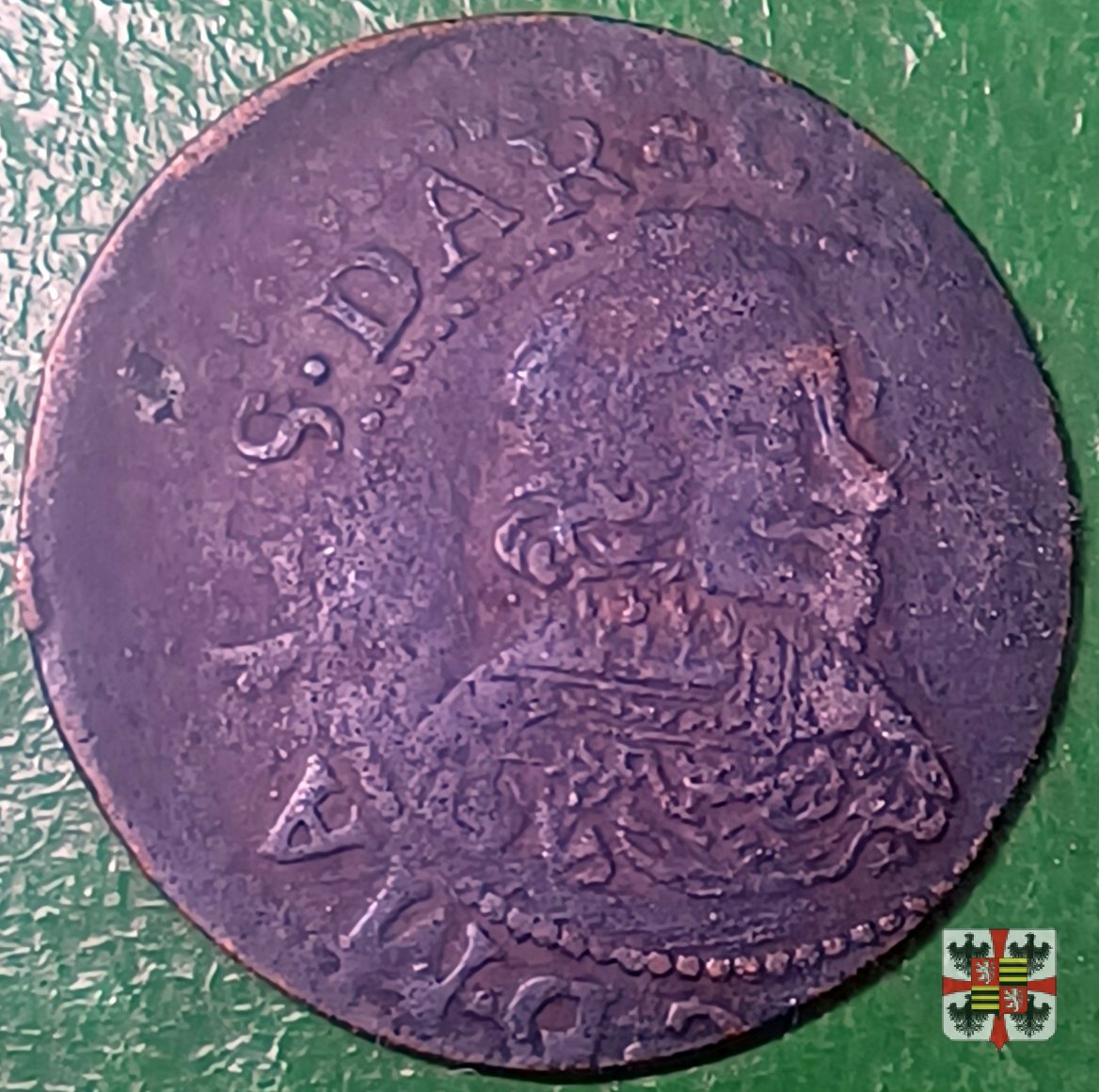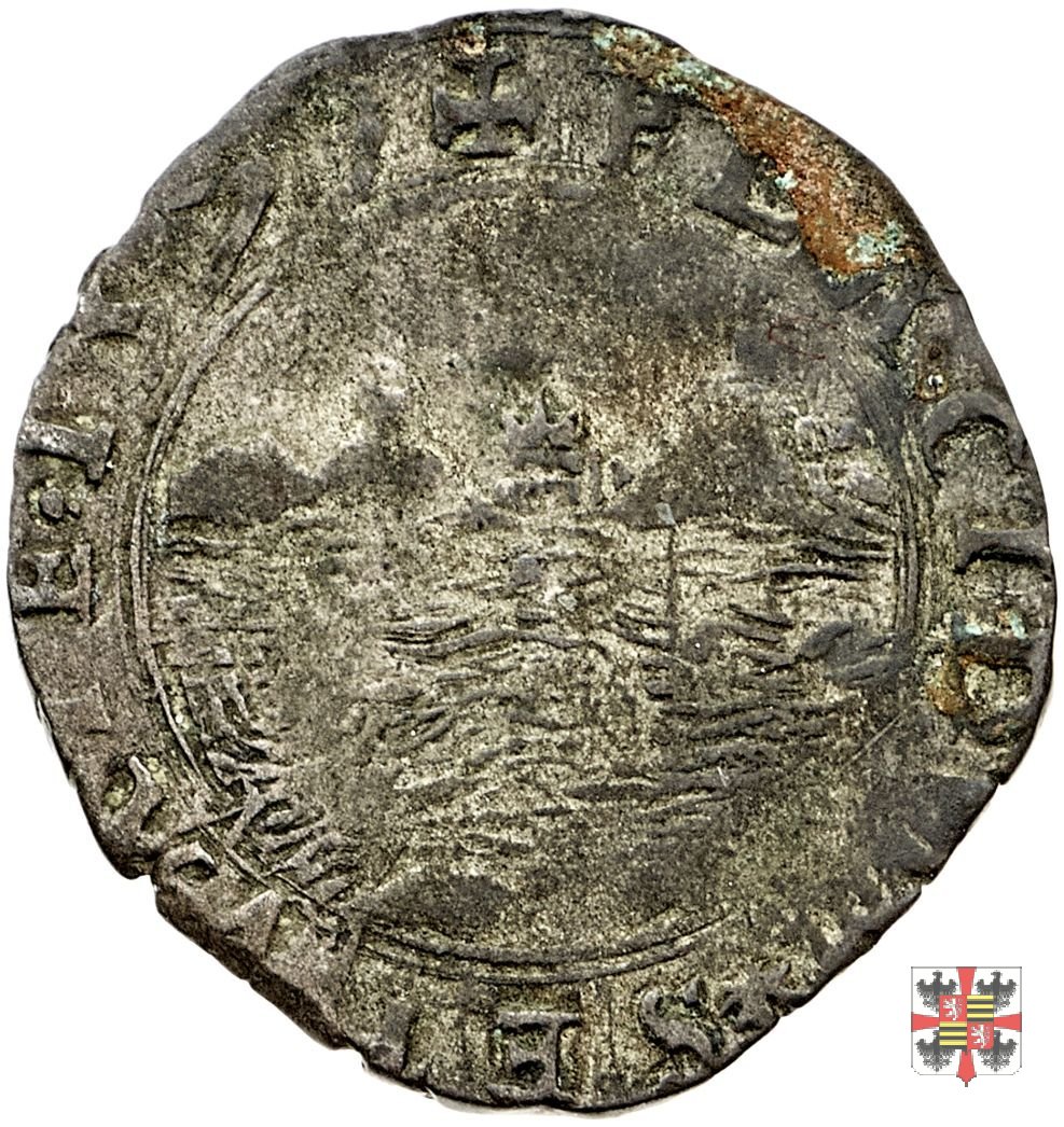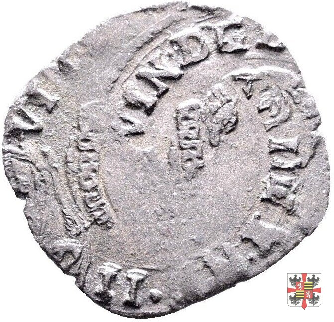 Variante con al rovescio un’aquiletta al posto del giglio inferiore; busto con colletto all'alemanna.