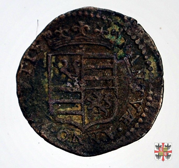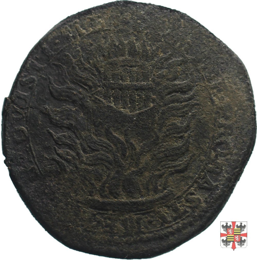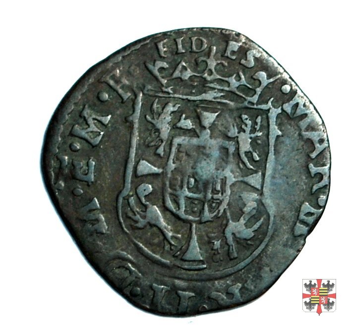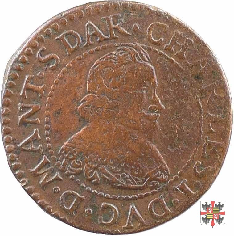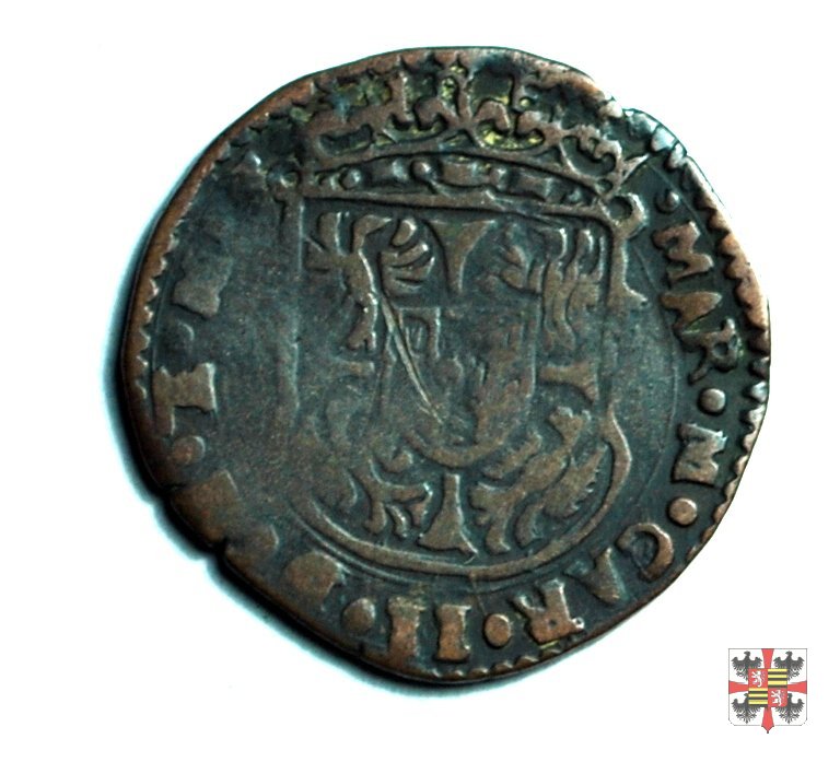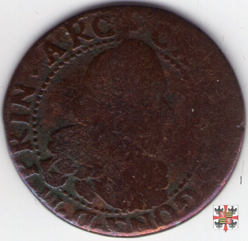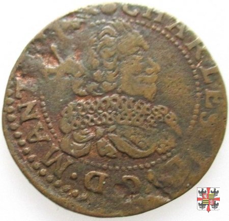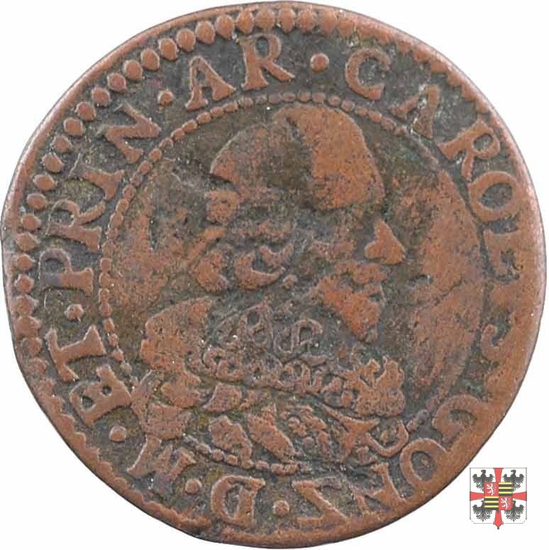 Legenda del D/ in latino, CAROLVS GONZ (Z rovesciata) D M ET PRIN AR; al R/ è presente un cerchio lineare semplice al posto dei due cerchi concentrici tenuti uniti da otto globetti.