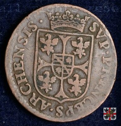 Liard testa coronata (1606 - Charleville) Disegno tratto da Monnaies féodales de France-Faustin Poey D'Avant | Sat 29/03/08 - 23:17 | |||